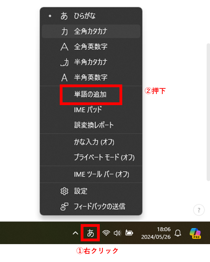 ユーザ辞書の登録方法(Windows11の場合)